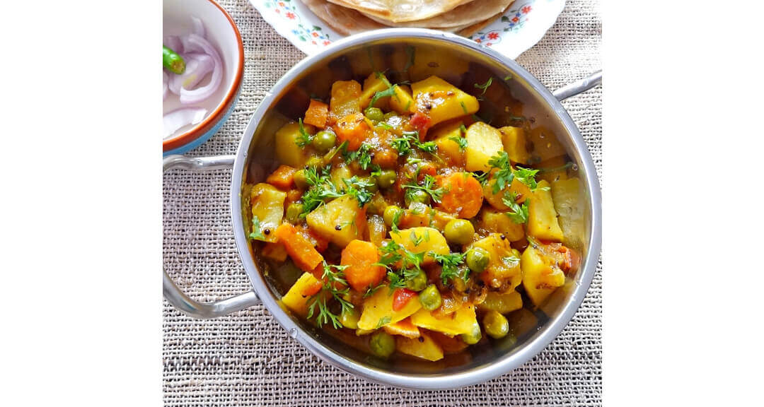 Alu Gajar Sabji is a popular Indian dish made with potatoes and carrots. It is a simple and delicious dish that can be served as a side dish or as a main course. The dish is made by sautéing potatoes and carrots in oil and spices, and then simmering them in a flavorful tomato-based sauce.