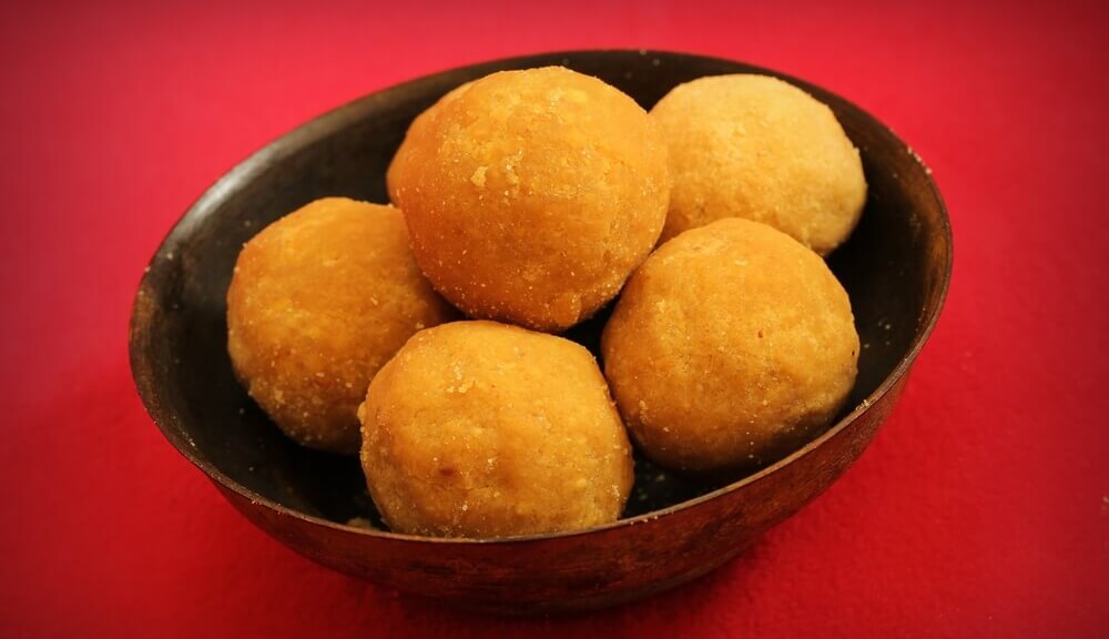 Besan Laddu is a popular Indian sweet made with gram flour, sugar, ghee, and nuts. It is a traditional Indian dessert that is often served during festivals and special occasions. The main ingredients are gram flour, sugar, ghee, and nuts such as almonds, cashews, and pistachios. The gram flour is roasted in ghee until aromatic and then mixed with sugar and nuts. The mixture is then shaped into small round balls and garnished with more nuts. Besan Laddu is a delicious and nutritious sweet that is enjoyed by people of all ages.