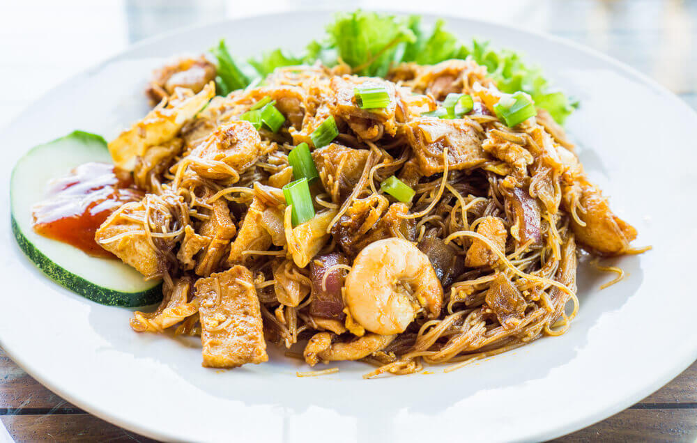 Bihun Goreng is a popular Indonesian dish made with stir-fried rice vermicelli noodles. It is usually served with a variety of vegetables, meats, and seafood, and is often topped with a spicy sambal sauce. Bihun Goreng is a popular street food in Indonesia, and is also served in many restaurants. It is a quick and easy meal that has a good amount of protein due to the addition of meat.