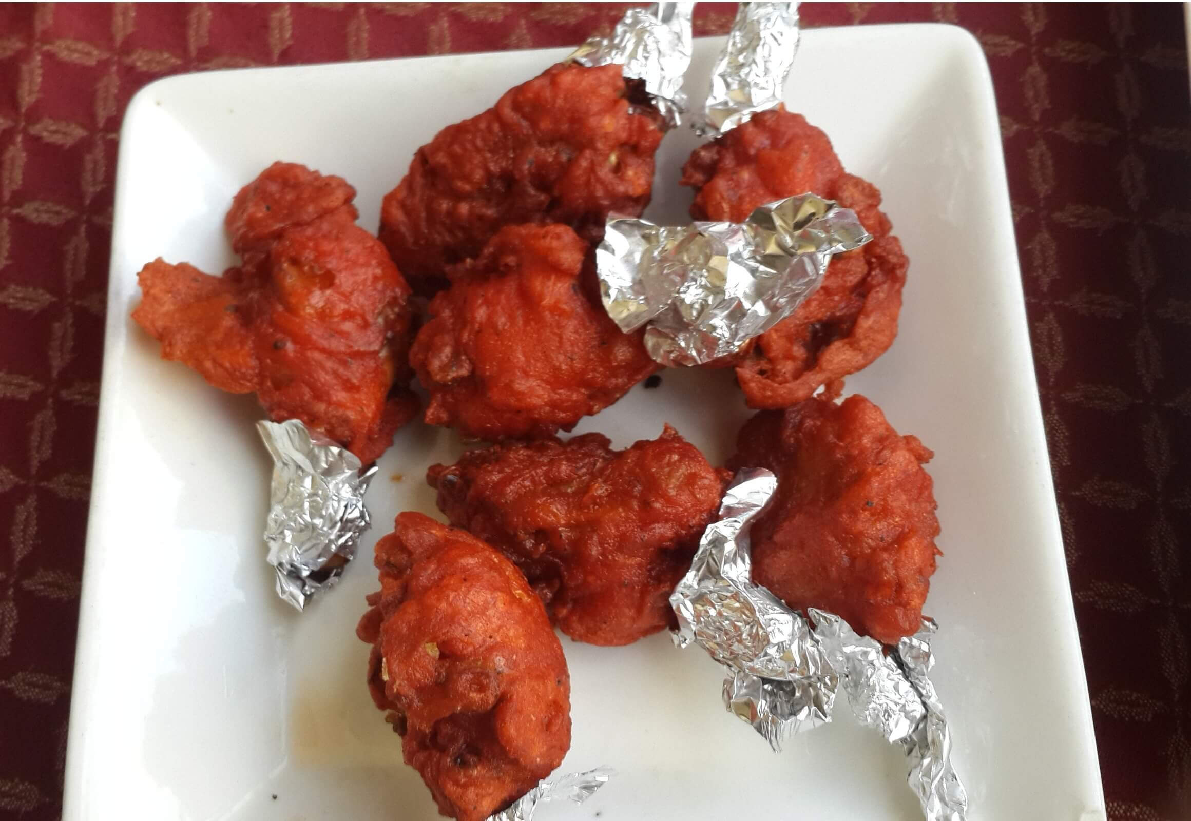 Chicken lollipops are a popular appetizer or snack dish in Indian cuisine. They are made by marinating chicken wings in a spicy mixture of spices and then deep-frying them until they are golden and crispy. A little all purpose flour is also added to make the lollipops crunchy. The lollipops are served hot with chilli sauce.