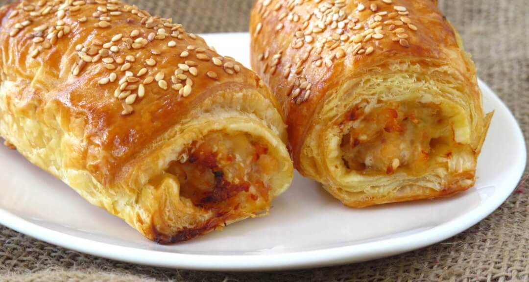 Chicken Puff is a popular snack food made with a pastry crust filled with a savory chicken filling. The filling is usually made with cooked chicken, onions and spices. The pastry sheet is usually made with all purpose flour and oil and is easily available frozen or can be made from scratch. The pastry is then filled with the chicken mixture and baked until golden brown. Chicken Puff is often served as an appetizer or snack, and tastes best when served hot.