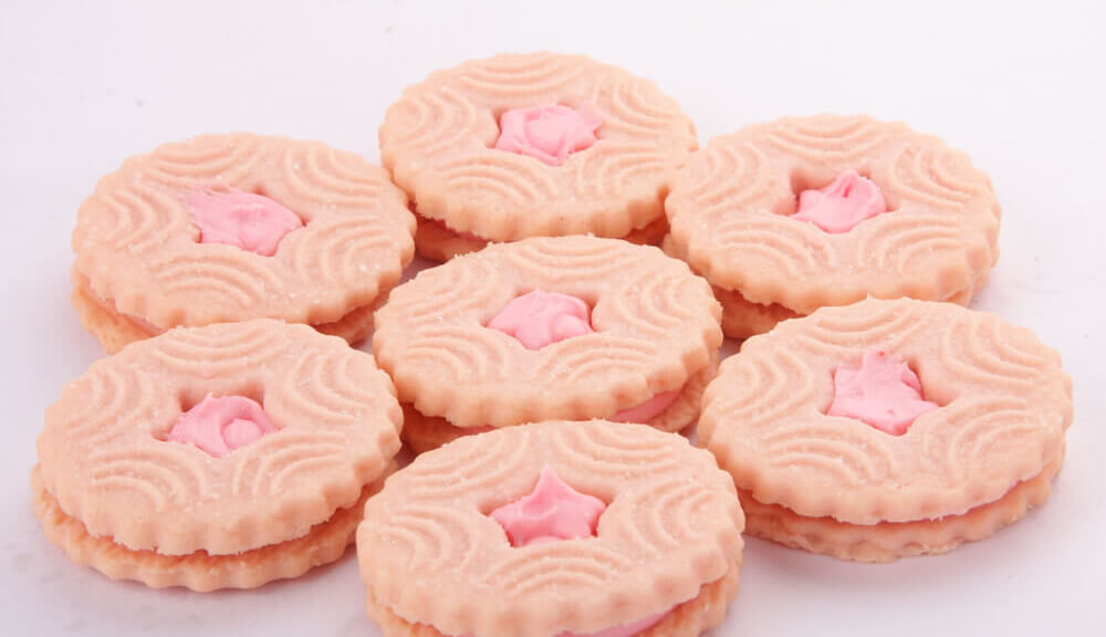 Cream Biscuits are a type of biscuit that is made with a combination of flour, sugar, butter, and cream. The dough is usually rolled out and cut into shapes before being baked. The biscuits are usually topped or sandwiched with a layer of cream, either plain or flavored, and may be decorated with sprinkles or other toppings. Cream Biscuits are popular in many countries. They are often served as a snack or dessert, and can be enjoyed with a cup of tea or coffee.