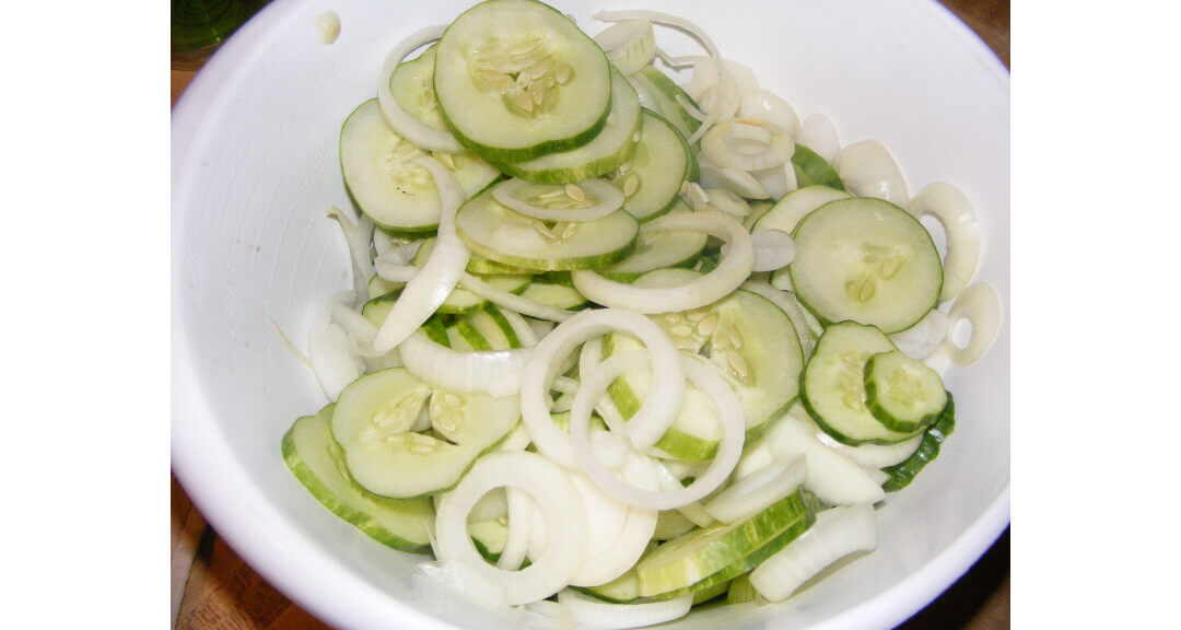 Cucumber Onion Salad is a simple and refreshing side dish that is perfect for summer barbecues and potlucks. This salad is made with cucumbers, onions, and a simple vinaigrette dressing. The cucumbers and onions are sliced thin and combined with the dressing to create a light and flavorful salad. Adding this salad is a good way to increase fiber intake and help in portion control.