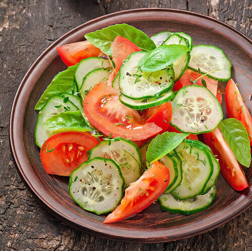 Pour the dressing over the cucumbers and onion and toss to combine.