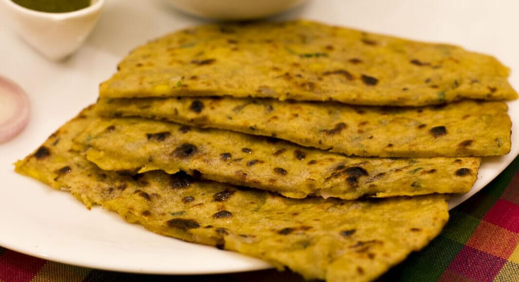 Dal Parantha is a popular Indian flatbread made with a combination of lentils and spices. It is usually served with a side of yogurt or pickle. The dough is made with whole wheat flour and is stuffed with a mixture of cooked lentils, spices, and herbs and then shallow-fried in oil or ghee until it is golden brown and crispy. Dal Parantha is a popular breakfast dish in North India and is often served with a side of chutney or pickle.