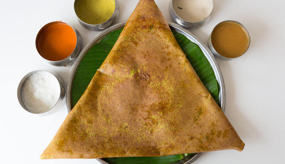 Dosa with Aloo Masala is a much loved South Indian dish. It is a thin, crispy crepe made from a fermented batter of rice and lentils, filled with a spicy potato curry. The potato curry is made with potatoes, onions, ginger with a mustard seeds and curry leaves tempering. The dosa is usually served with chutney and sambar. It is a popular breakfast dish, but can also be enjoyed as a snack or light meal.