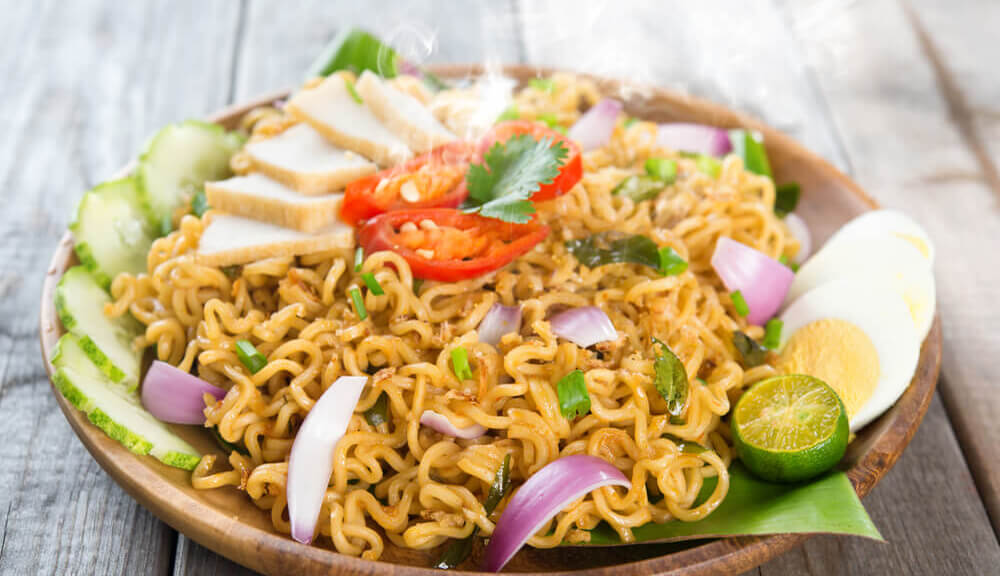 Egg Maggi is a easy, simple and quick snack dish and a favorite among children and adults alike. It is made by boiling Maggi noodles and adding boiled eggs to it. It is usually served with a side of tomato ketchup or chilli sauce.