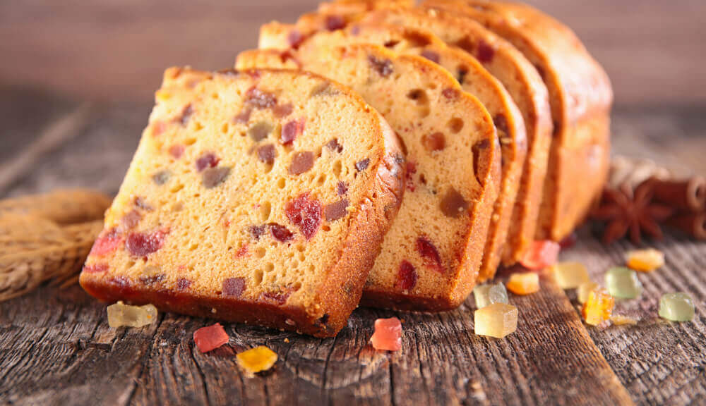 A fruit cake is a type of cake made with chopped candied or dried fruit, nuts, and spices, and sometimes soaked in spi. It is sometimes served with a topping of marzipan, icing, or glaze. Fruit cakes are typically served during the holiday season in many countries. Fruit cakes are often made with a variety of fruits, such as raisins, currants, dates, figs, cherries, and citrus peel. Nuts, such as almonds, walnuts, and pecans, are also commonly used. Spices, such as cinnamon, nutmeg, and allspice, are often added to enhance the flavor.