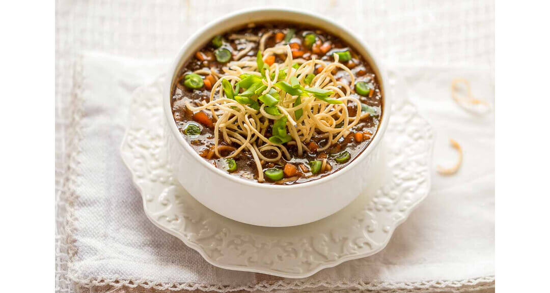 Manchow Soup is a popular Chinese soup, made with vegetables, noodles, and a variety of seasonings. It is often served as an appetizer. The soup is usually garnished with fried noodles, chopped spring onions, and chili oil. It is a popular dish in Chinese restaurants and is also served in many Indian restaurants with Indian variations.
