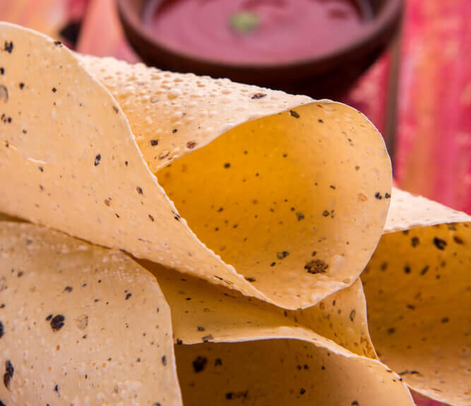 Masala Papad is a popular Indian snack made from a thin, crispy flatbread called papad. It is usually served as an appetizer or side dish. The papad is topped with a mixture of spices, onions, tomatoes, and other ingredients. It is usually served with chutney or yogurt. Masala Papad is a popular snack in India.