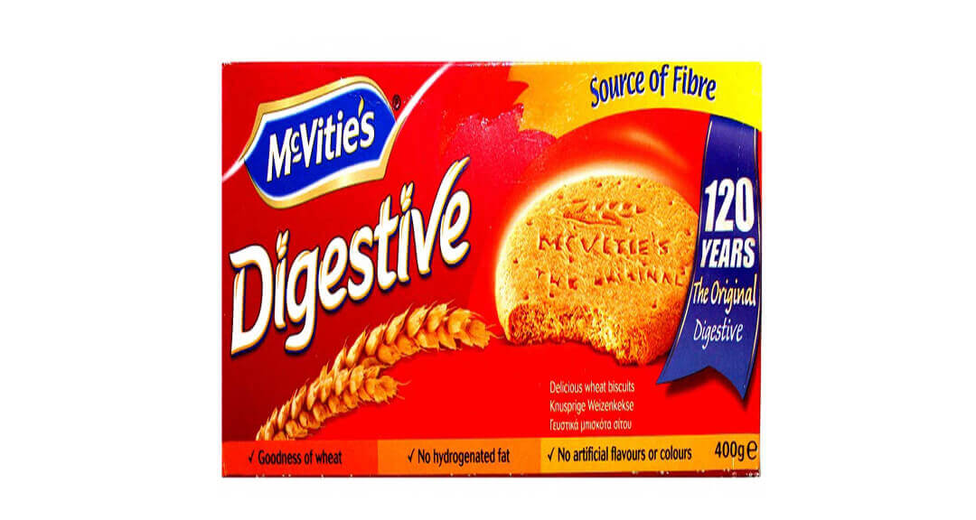 McVites Digestives are a popular type of biscuit (cookie) made by the United Kingdom-based company McVitie's. The biscuit is a semi-sweet, whole-wheat flour-based biscuit. The biscuit is often eaten with tea or coffee, and is a popular snack in the United Kingdom. The biscuit is also popular in other countries, including India, Australia, and New Zealand.