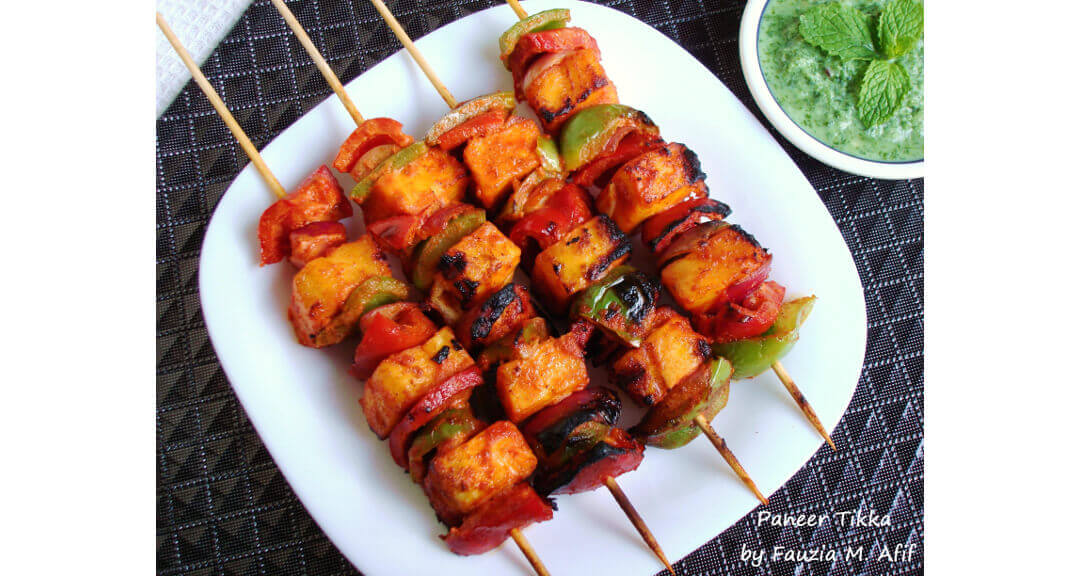 Paneer Tikka is a popular Indian dish made with cubes of paneer (Indian cottage cheese) marinated in a spicy yogurt-based sauce and then grilled. It is often served as an appetizer or snack. Paneer Tikka is usually served with a side of chutney or raita.