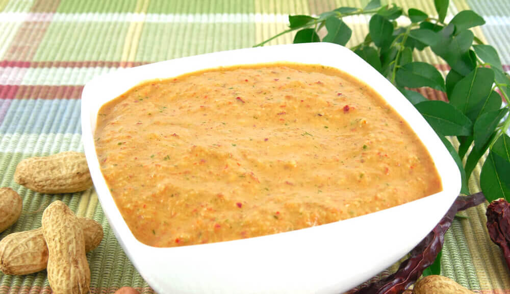 Peanut Chutney is a popular condiment in India. It is made from roasted peanuts, coconut, tamarind, and spices. The peanuts are ground into a paste and then mixed with the other ingredients to create a thick, flavorful chutney. Peanut Chutney is usually served with idli, dosa, or other South Indian dishes. It can also be used as a dip for snacks such as vada or pakoras. Peanut Chutney is a delicious and versatile condiment that adds a unique flavor to any dish.