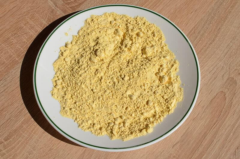 In a bowl, mix together the sattu flour, cumin seeds, coriander powder, red chilli powder, turmeric powder, garam masala, amchur powder, salt and sugar.
