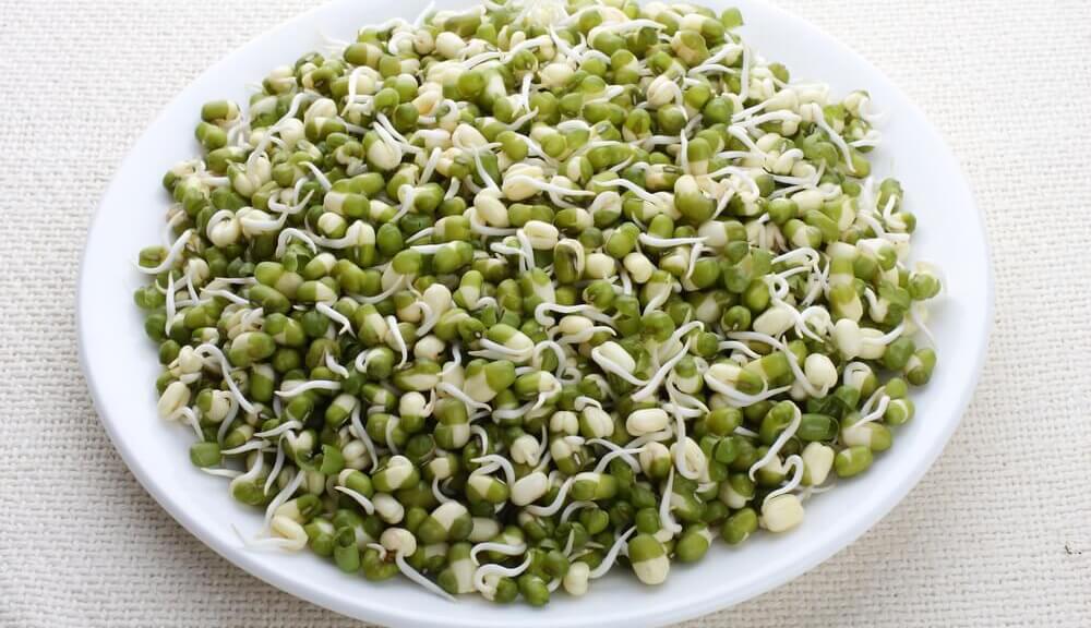 Sprouted Moong is made by soaking and sprouting moong, a type of small green bean, native to South Asia. Sprouted Moong is easier to digest, is high in protein and fiber, and is a good source of vitamins and minerals. It can be eaten raw, cooked, or used in salads and other dishes. Sprouted Moong is a healthy and nutritious food item that can be enjoyed in a variety of ways.