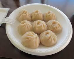 A steamed chicken momo is a type of dumpling popular in the Himalayan region mainly Tibet. A mixture of ground chicken, onion, garlic, ginger, cilantro, and spices is filled in a thin rolled dough circle and formed into a dumpling. The dumplings are then steamed until cooked through. They are often served with a dipping sauce made from tomato, garlic, and chilies.
