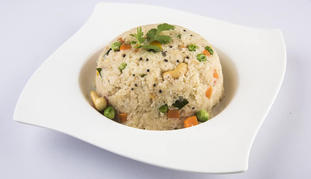 Vegetable Rava Upma is a popular South Indian breakfast dish. It is made with semolina (rava), vegetables, and spices. The semolina is cooked with vegetables, spices, and water until it is soft and fluffy. The dish is usually served with chutney or sambar. It is a healthy and nutritious dish that can be enjoyed for breakfast, lunch, or dinner.